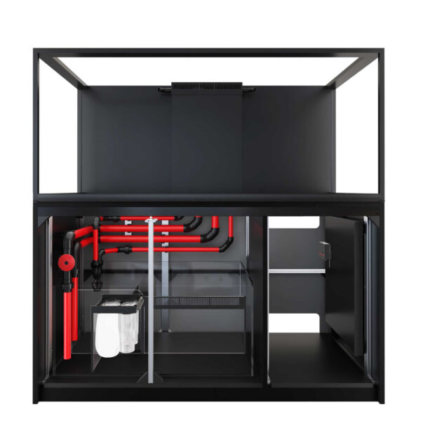 • Refugium‑ready main sump with adjustable skimmer chamber and media compartments.