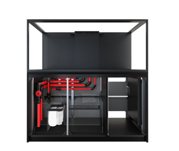 Refugium-ready main sump with adjustable skimmer chamber and media compartments.
